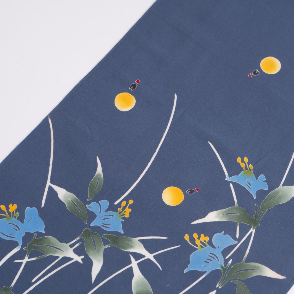 A tenugui depicting the beautiful light of fireflies floating in the darkness of the night and the peaceful night scenery. Its beautiful design soothes the hearts of those who see it, bringing a moment of relaxation into everyday life.