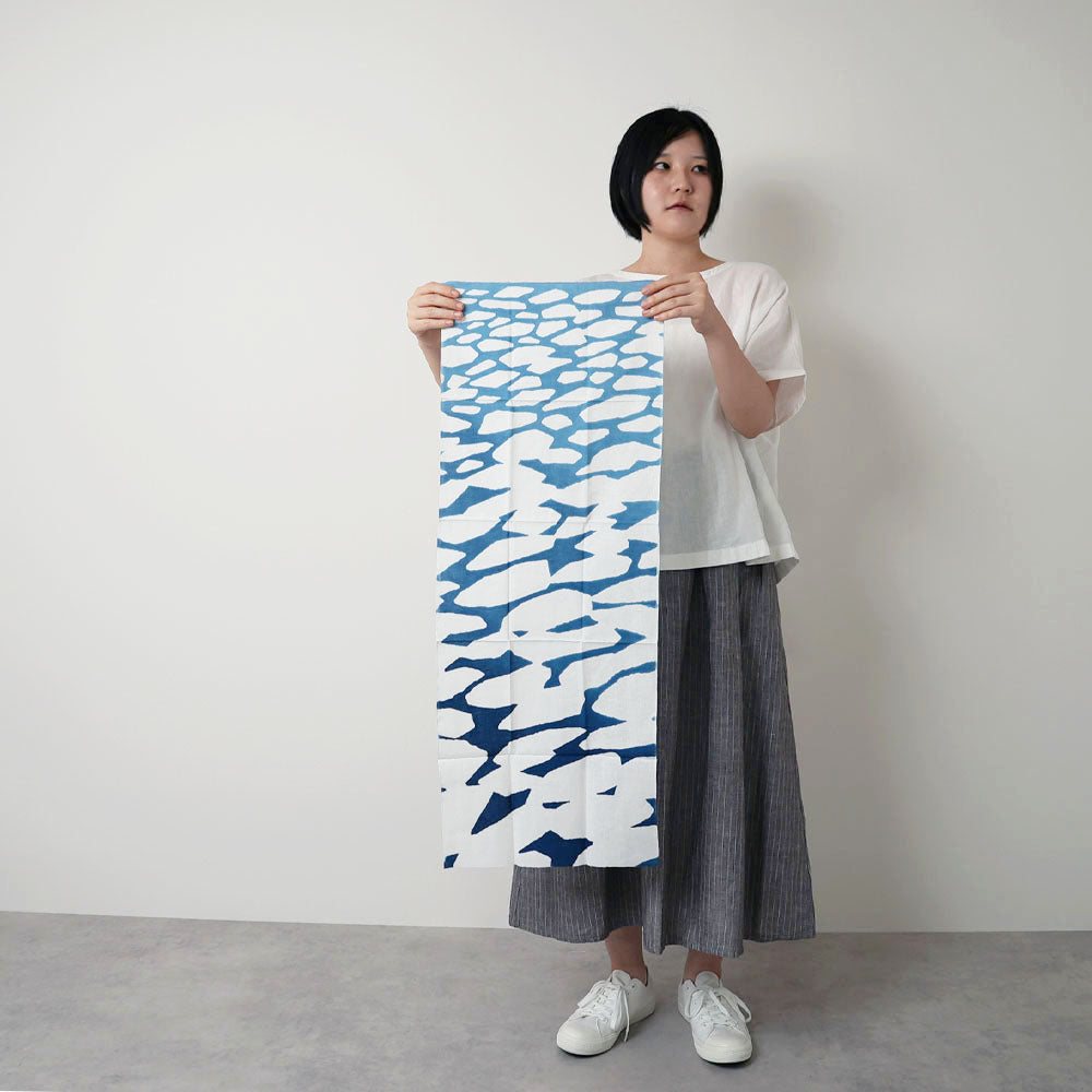 Kamawanu's scarves are made using the uniquely Japanese dyeing technique "Chusen" that has been passed down since the Meiji era. By placing a resist and dyeing the fabric in one go, the scarves can be used reversibly without lining, which is a distinctive feature.