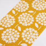 This is a hand-dyed fabric made by weaving vertical threads and tying horizontal threads with sesame on the raw fabric. Using chili pepper colors and vermilion as the base, delicate round small flowers quietly add brilliance.