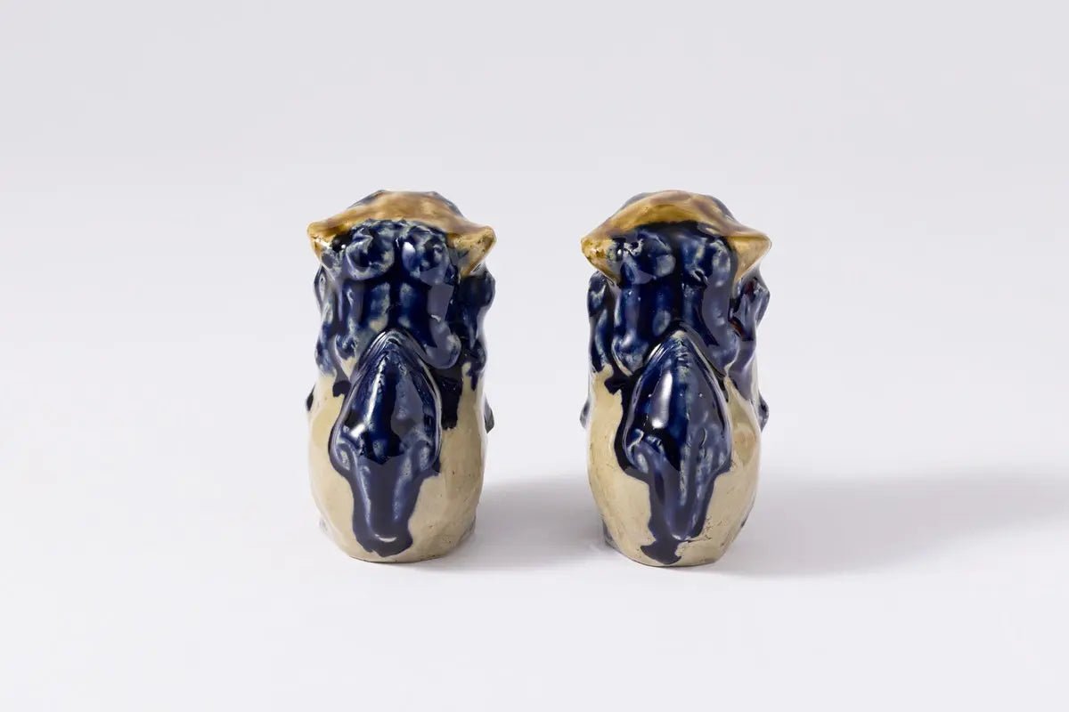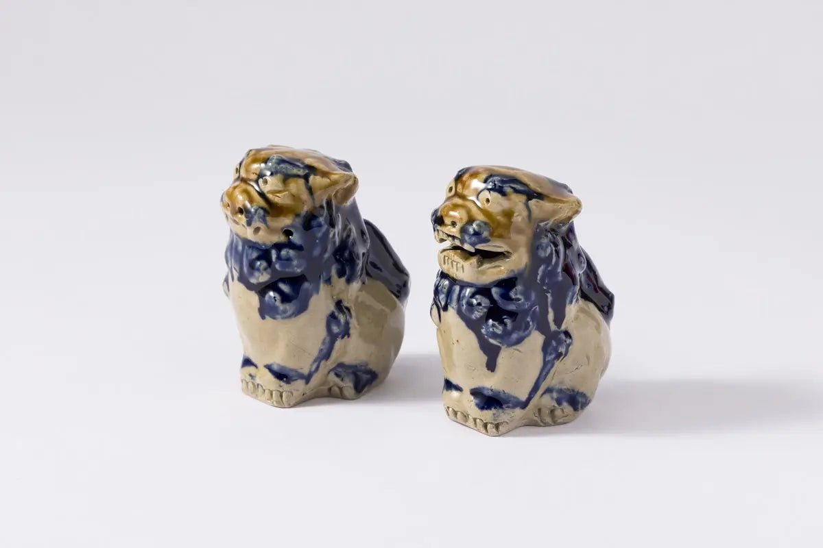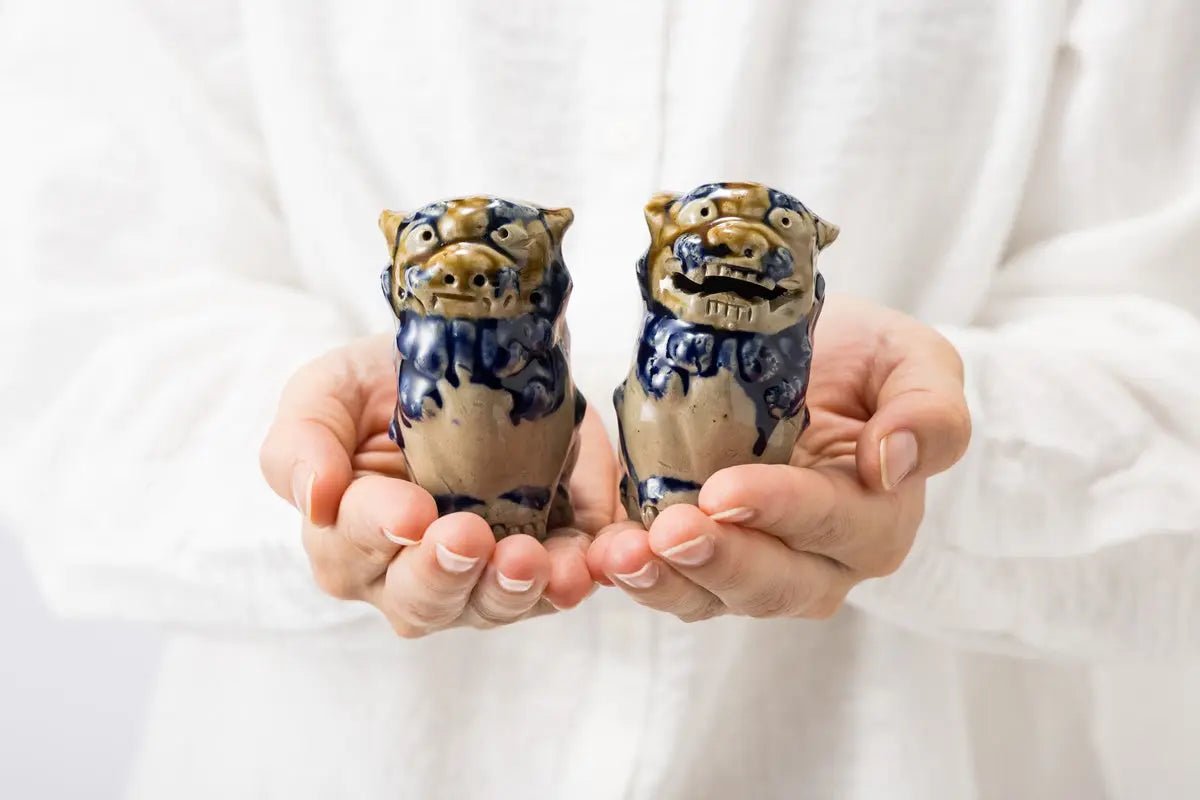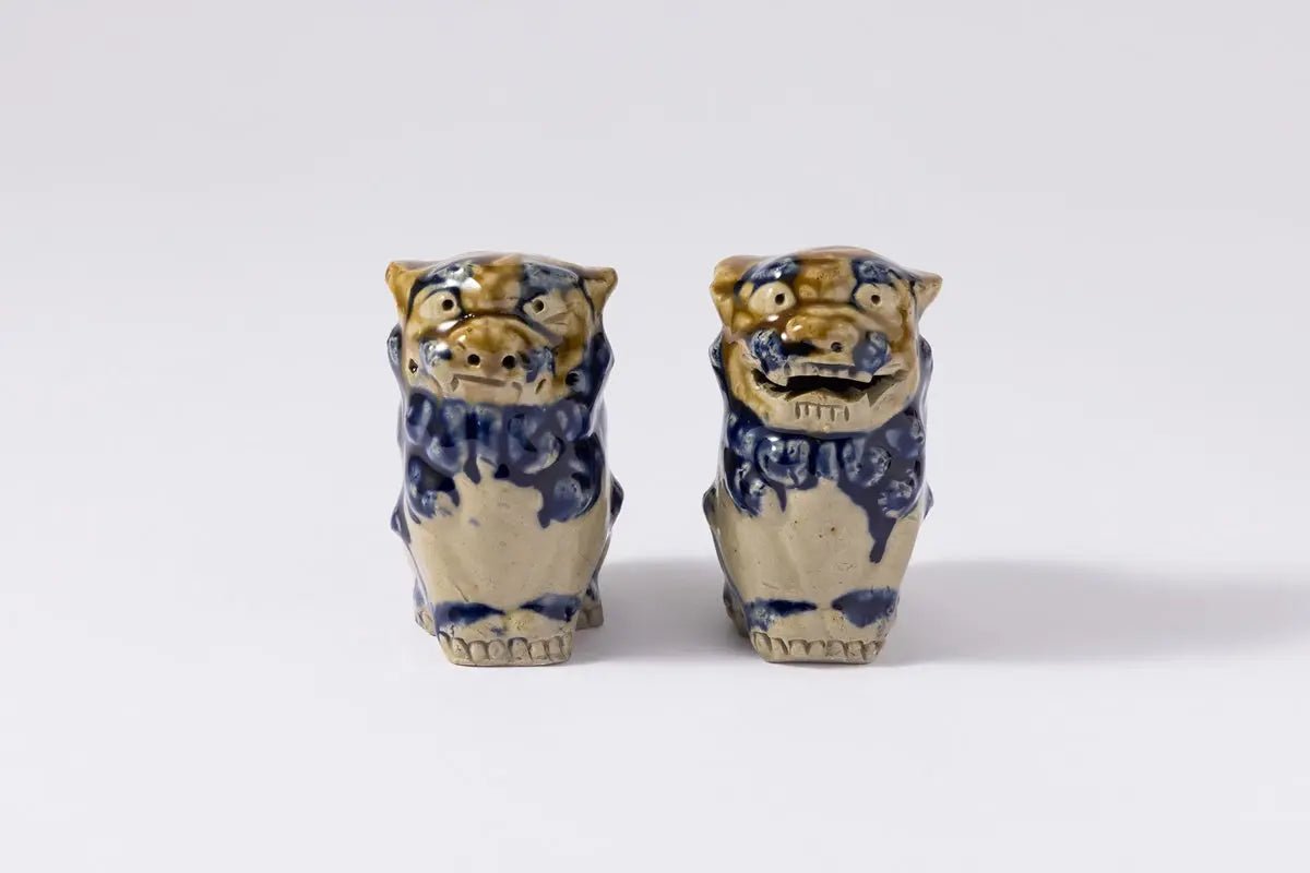 Une adorable paire de figurines en céramique représentant la divinité gardienne d'Okinawa « Shisa ».
