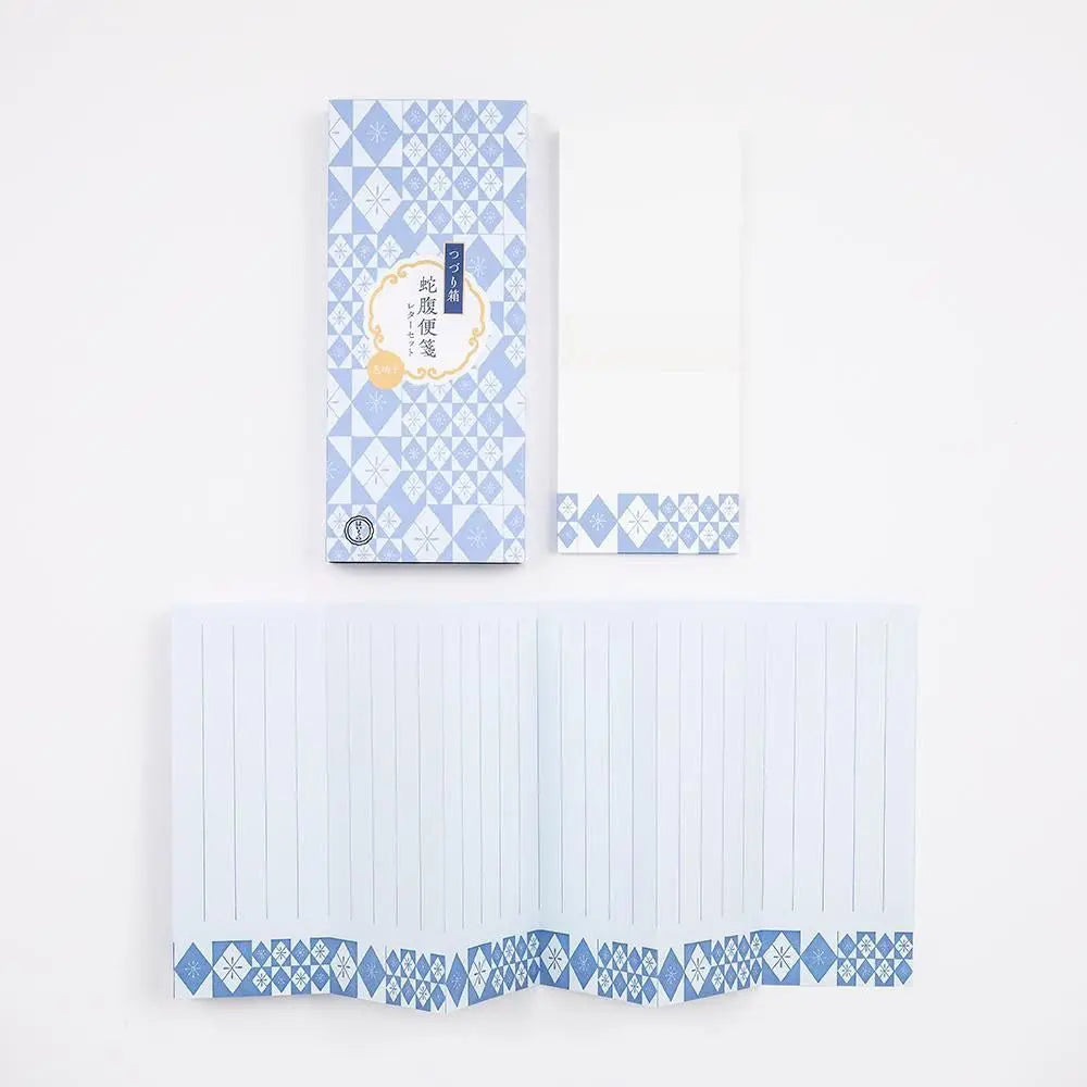 Nous avons rangé des feuilles de lettres Serpent ventre dans une boîte à lettres en papier millénaire de Hangenbari. En tant que boîte à lettres, elle contient à la fois des stylos et des ciseaux pour que vous puissiez toujours écrire quand l'envie vous prend.