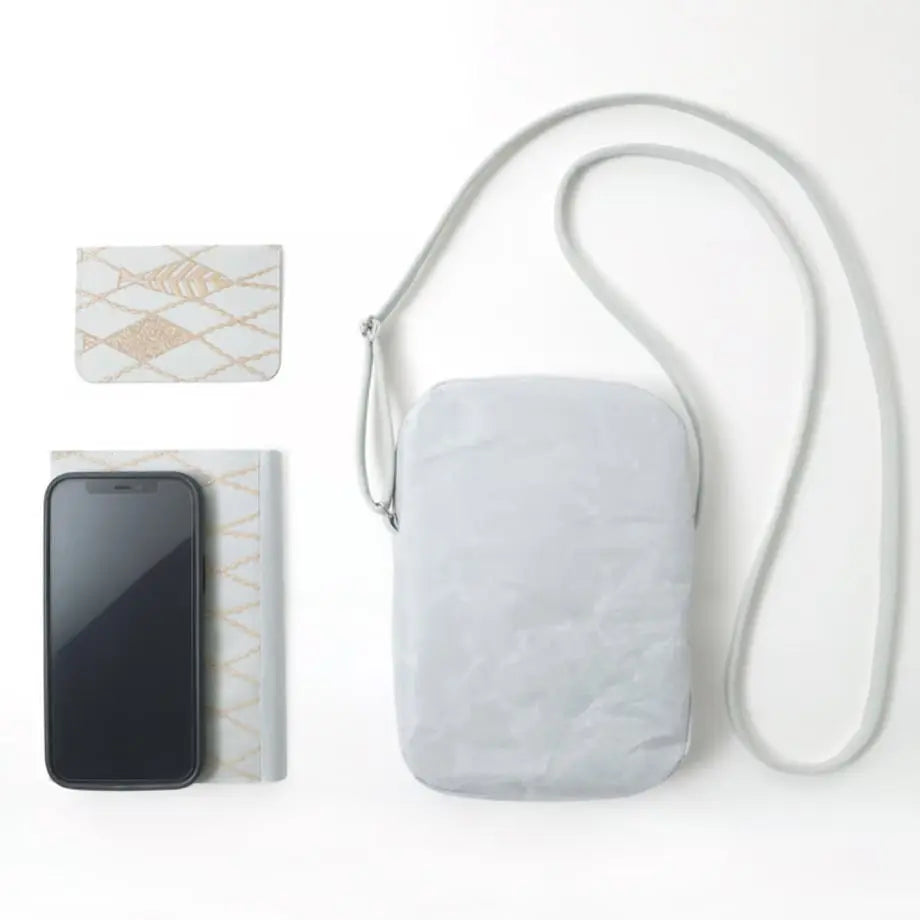 Washi Paper Smartphone Pouch | mina perhonen | run run run Gray | Lightweight Crossbody Bag | SIWA