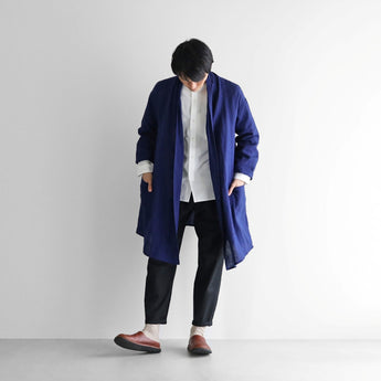 ボタンや襟をあえて省いたシンプルなデザインで、生地そのものの美しさと風合いを存分に感じていただけます。