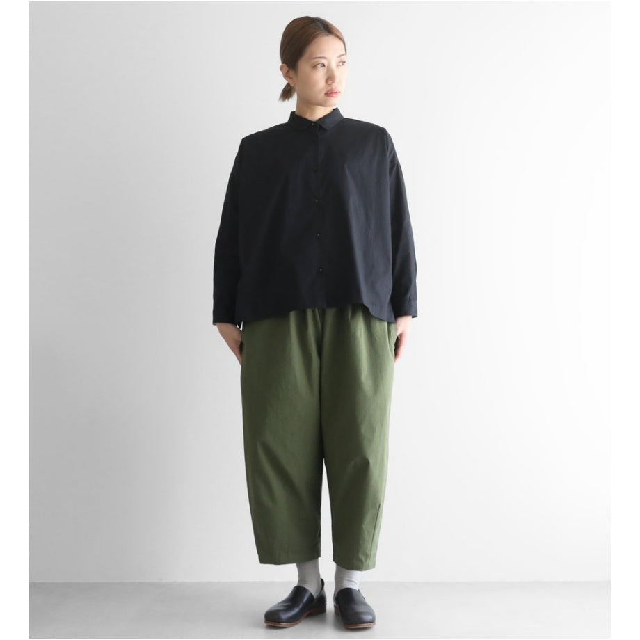 もも周りにたっぷりと生地を使いながら、裾に向かって細くなるテーパードラインで、すっきりとした印象に。